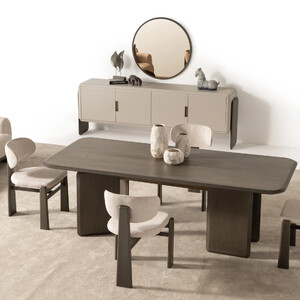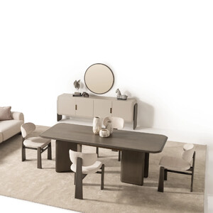 Luma Yemek Masası'nın zarif yapısı zamansız meşe kaplamasıyla açığa çıkıyor. Pirinç eskitme boyası ve estetik ayak detaylarıyla modern havayı tasarımında harmanlıyor.